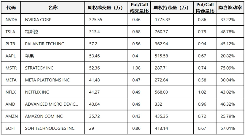 2. Tesla The stock fell 2.10% in the previous trading day, with the put/call ratio rising and trading volume increasing the day before.