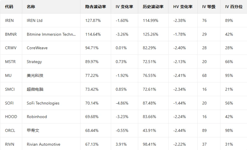 Top 10 US Stock ETFs by Implied Volatility (Based on: Market Cap > $10 billion)