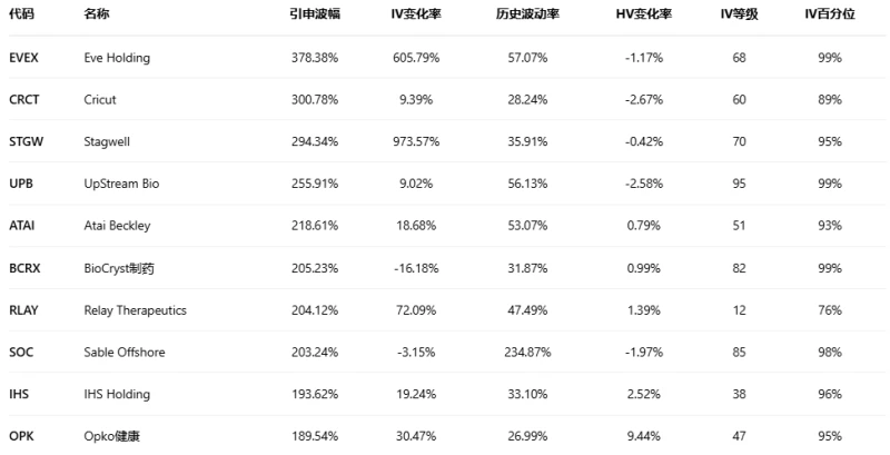 Top 10 most volatile US stock options (underlying asset market capitalization > $10 billion and option trading volume > 100,000 contracts)
