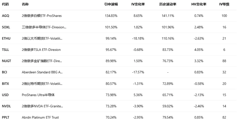 Top 10 US Stock ETFs by Implied Volatility (Based on: Market Cap > $10 billion)