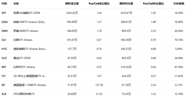 III. Top Ten US Stock ETF Options Trading Volume Ranking