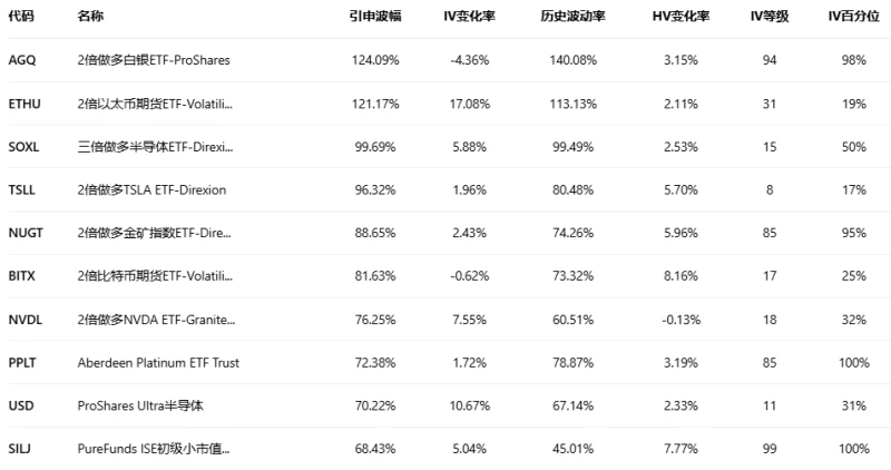 Top 10 US Stock ETFs by Implied Volatility (Based on: Market Cap > $10 billion)