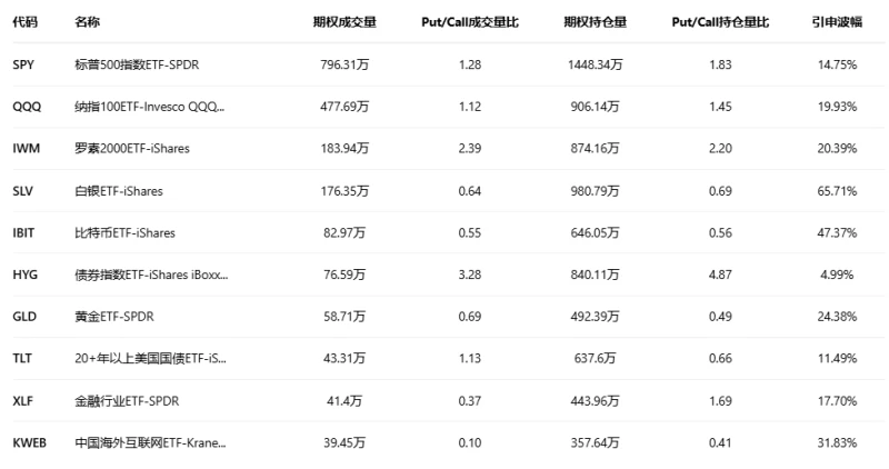 III. Top Ten US Stock ETF Options Trading Volume Ranking