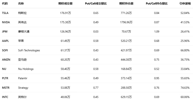1. Tesla The stock rose 3.1% in the previous trading day, with the put/call ratio declining and trading volume decreasing the day before.