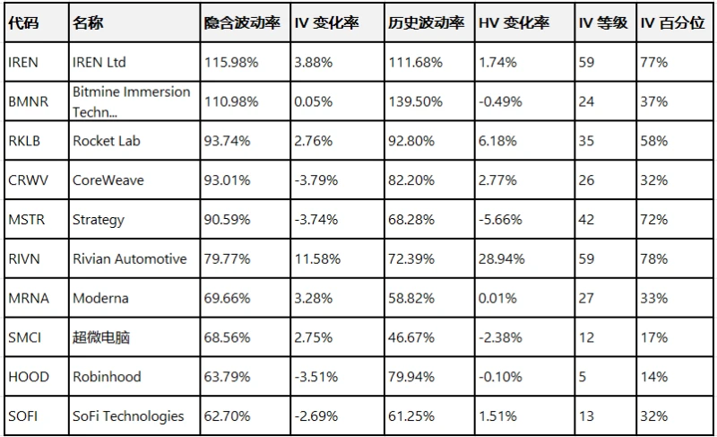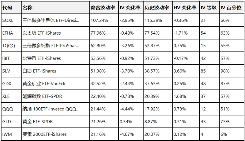 Top 10 US Stock ETFs by Implied Volatility (Based on: Market Cap > $10 billion)