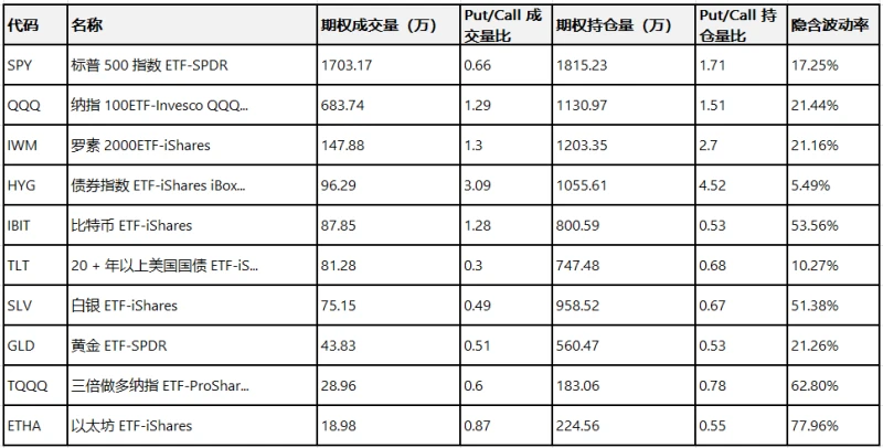 III. Top Ten US Stock ETF Options Trading Volume Ranking