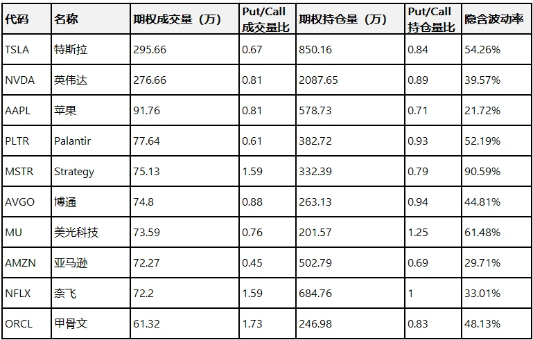 2. Tesla The stock rose 3.45% in the previous trading day, with the put/call ratio increasing the day before and trading volume remaining flat.