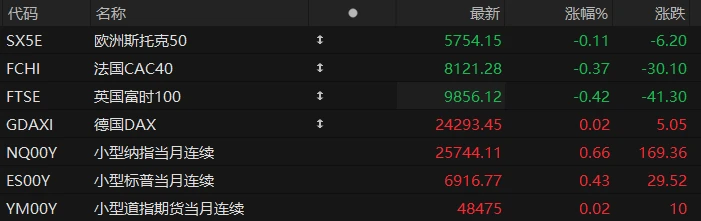 U.S. stock index futures rose across the board in pre-market trading on Monday, while most major European indices fell. As of press time, the Nasdaq... S&P 500 futures rose 0.66%, S&P 500 futures rose 0.43%, and Dow Jones futures rose 0.02%.