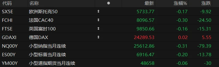 U.S. stock index futures fell across the board in pre-market trading on Tuesday, while most major European indices also declined. As of press time, the Nasdaq ... S&P 500 futures fell 0.31%, S&P 500 futures fell 0.20%, and Dow Jones futures fell 0.06%.