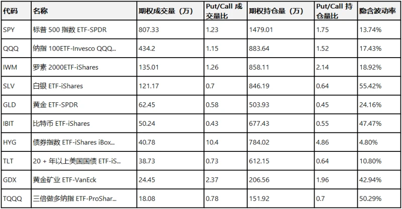 III. Top Ten US Stock ETF Options Trading Volume Ranking
