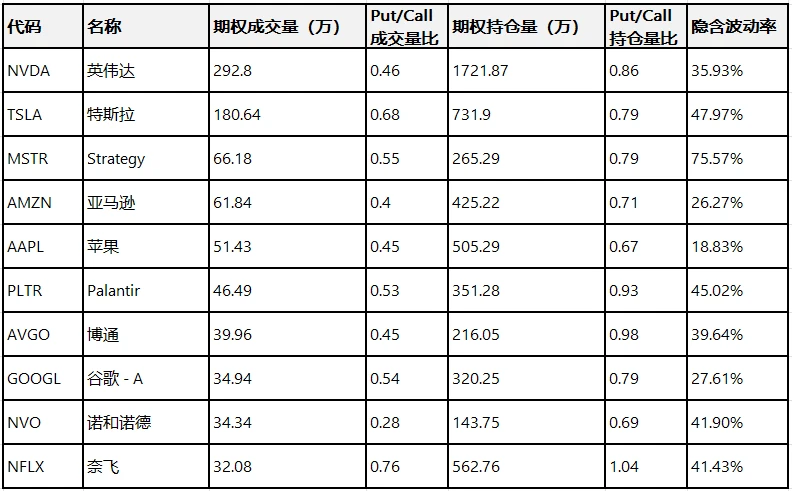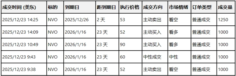 1. Novo Nordisk The stock rose 7.30% in the previous trading day, with the put/call ratio remaining relatively flat the day before, and trading volume increasing significantly.