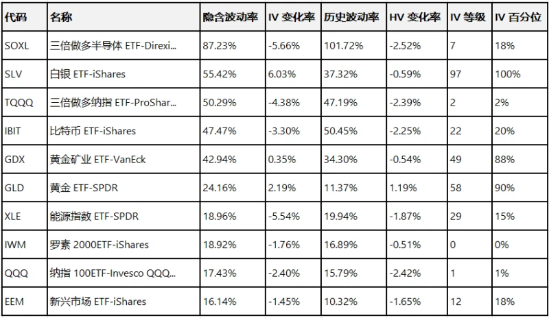 Top 10 US Stock ETFs by Implied Volatility (Based on: Market Cap > $10 billion)