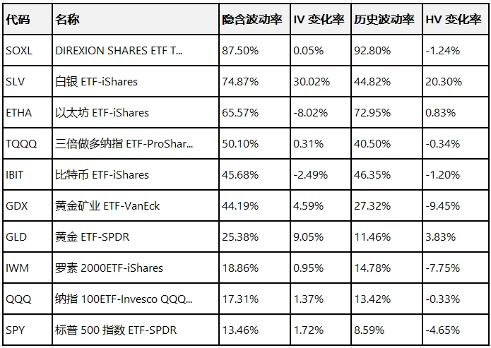 Top 10 US Stock ETFs by Implied Volatility (Based on: Market Cap > $10 billion)