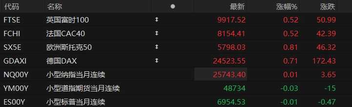 U.S. stock index futures traded in a narrow range in pre-market trading on Tuesday, while major European indices generally rose. As of press time, the Nasdaq... The S&P 500 futures index rose 0.01%, the Dow Jones futures index fell 0.03%, and the S&P 500 futures index fell 0.01%.