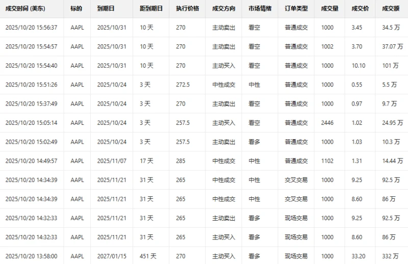 1. Apple The stock rose 3.94% in the previous trading day. The put/call ratio declined slightly the day before, and trading volume increased, indicating active bullish trading.