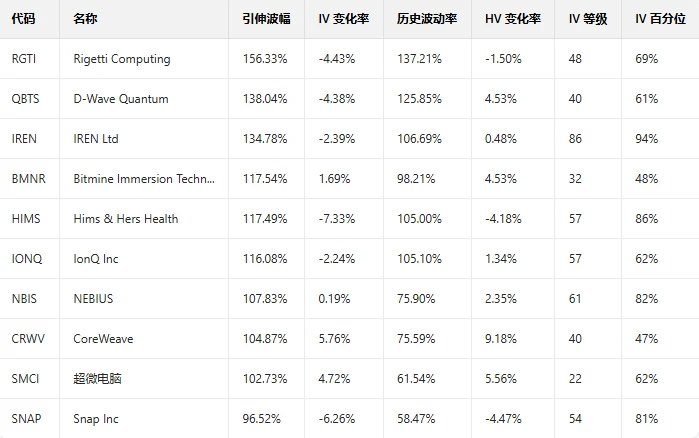 Top 10 US Stocks by Implied Volatility (Underlying Asset Market Cap > $10 Billion, Options Trading Volume > $100,000)