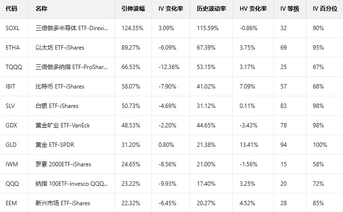 Top 10 US Stock ETFs by Implied Volatility (Based on: Market Cap > $10 billion)
