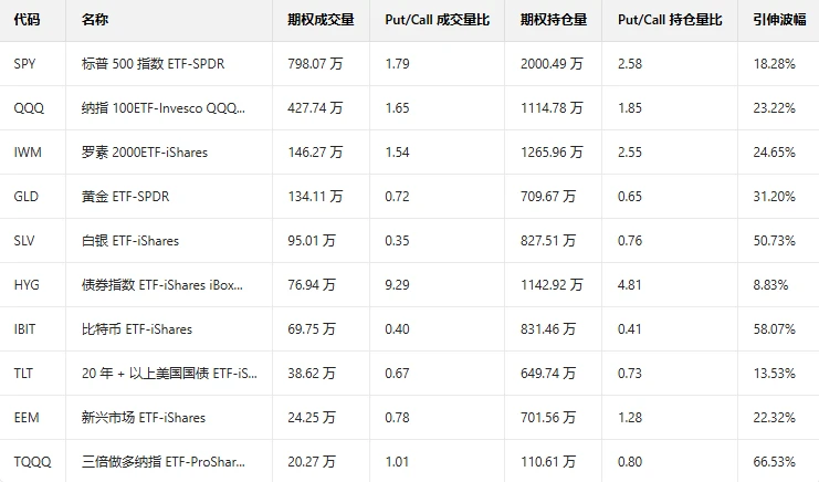 III. Top Ten US Stock ETF Options Trading Volume Ranking