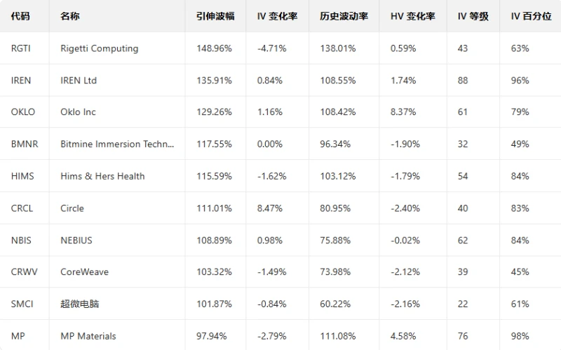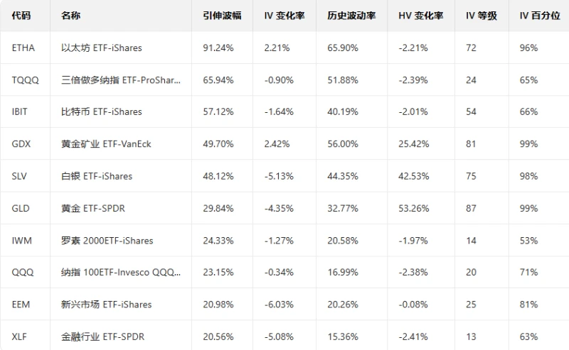 Top 10 US Stock ETFs by Implied Volatility (Based on: Market Cap > $10 billion)