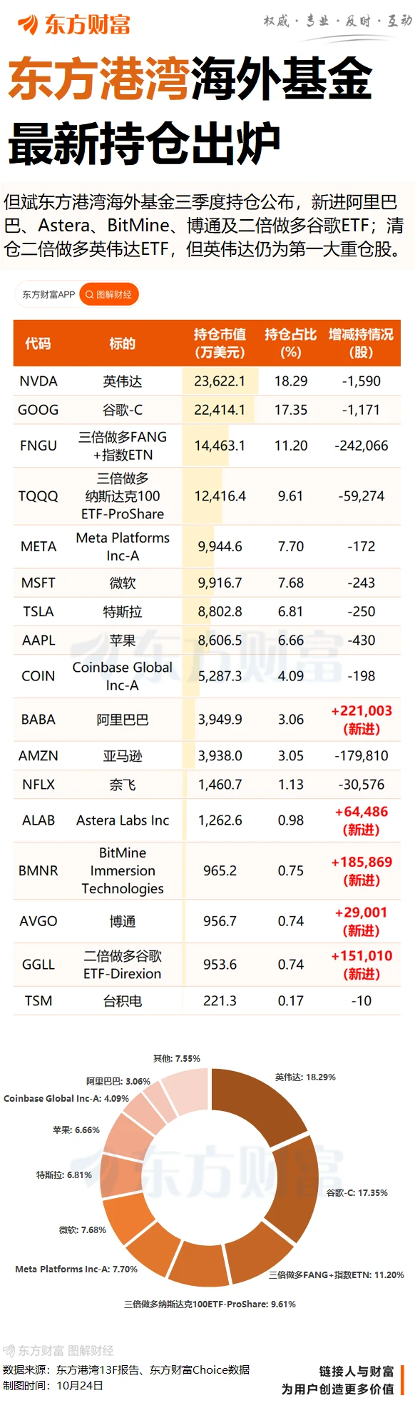In the third quarter, Dan Bin made a round of portfolio adjustments. First, he bought five new stocks: Alibaba , Broadcom , Astera Labs, BitMine Immersion Technologies (cryptocurrency), and a 2x leveraged long GOOGL ETF.