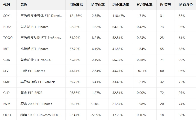 Top 10 US Stock ETFs by Implied Volatility (Based on: Market Cap > $10 billion)