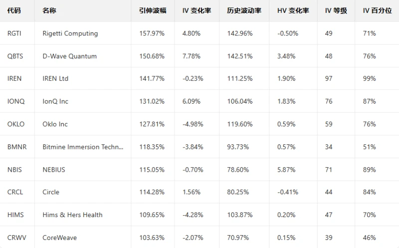 Top 10 US Stocks by Implied Volatility (Underlying Asset Market Cap > $10 Billion, Options Trading Volume > $100,000)