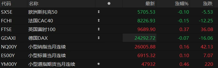 U.S. stock index futures rose across the board in pre-market trading on Tuesday, while most major European indices fell. As of press time, the Nasdaq... S&P 500 futures rose 0.16%, S&P 500 futures rose 0.10%, and Dow Jones futures rose 0.46%.