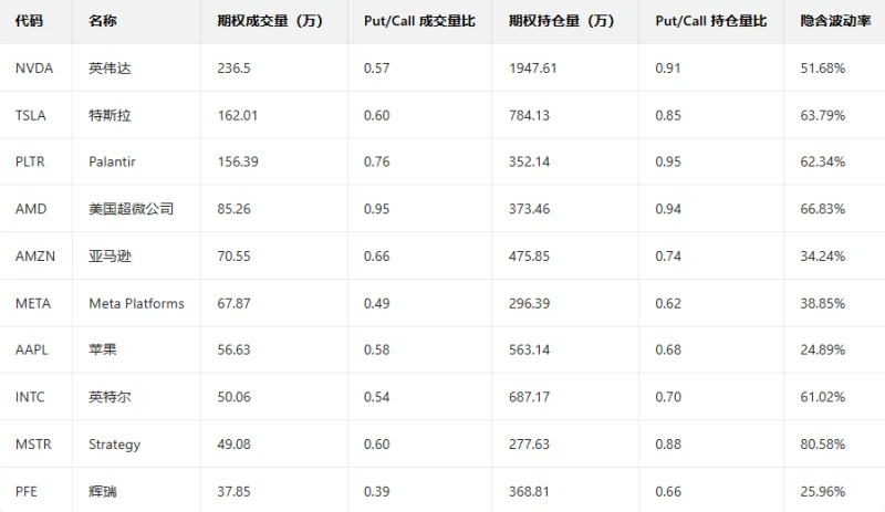 1. Nvidia The stock fell 3.96% in the previous trading day. The put/call ratio declined slightly the day before, and trading volume also declined slightly.
