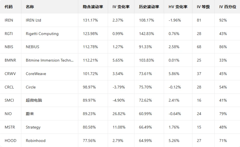 Top 10 US Stocks by Implied Volatility (Underlying Asset Market Cap > $10 Billion, Options Trading Volume > $100,000)