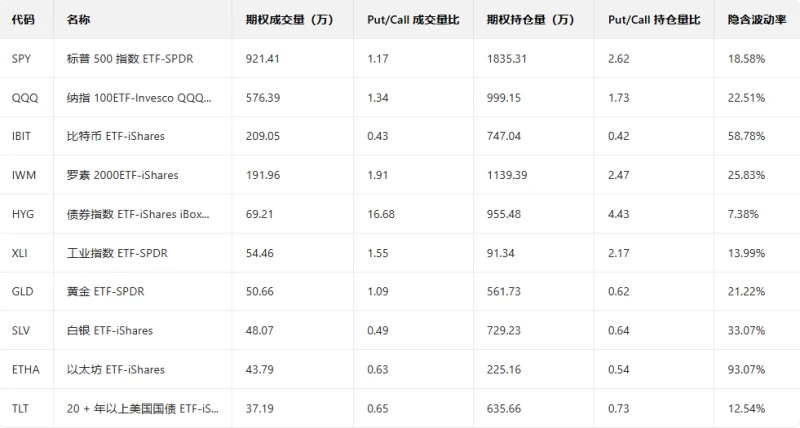 III. Top Ten US Stock ETF Options Trading Volume Ranking