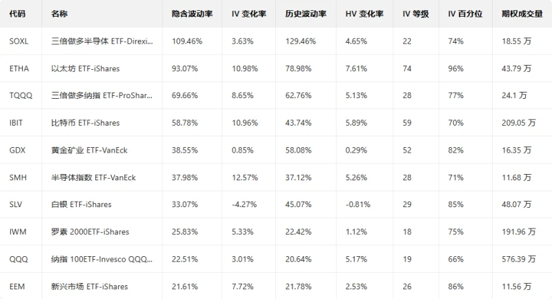 Top 10 US Stock ETFs by Implied Volatility (Based on: Market Cap > $10 billion)