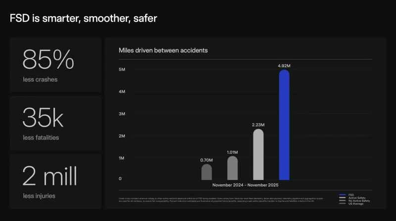 Regarding autonomous driving, FSD (Full Self-Driving) version 14.1 is already quite smooth, and version 14.3 will reach the level of "waking up from a nap and arriving at your destination." He believes that in the coming months, thanks to FSD technology, drivers will be allowed to text while driving. Furthermore, the regulated FSD Supervised has already been launched in six countries.
