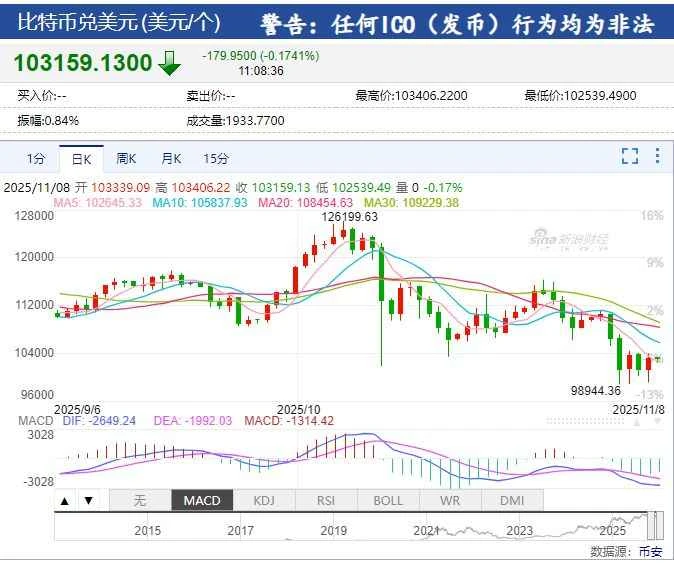 After a week of decline, Bitcoin prices stabilized and rebounded in late trading on November 7, rising above $103,000, but are still down about 18% from the record high of $120,000 set on October 6.