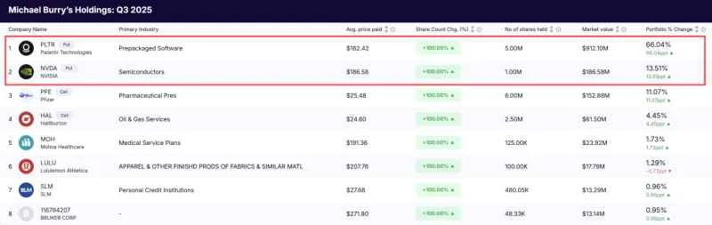 Currently, Scion Asset Management has total holdings of approximately $1.38 billion, with the majority of its funds concentrated in put options on Nvidia and Palantir.
