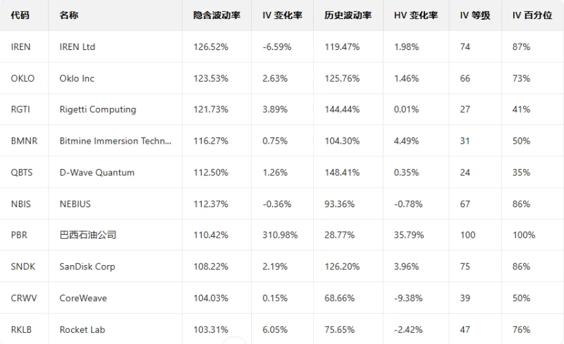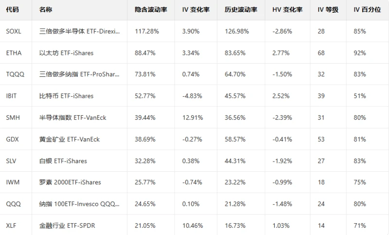 Top 10 US Stock ETFs by Implied Volatility (Based on: Market Cap > $10 billion)