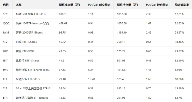 III. Top Ten US Stock ETF Options Trading Volume Ranking