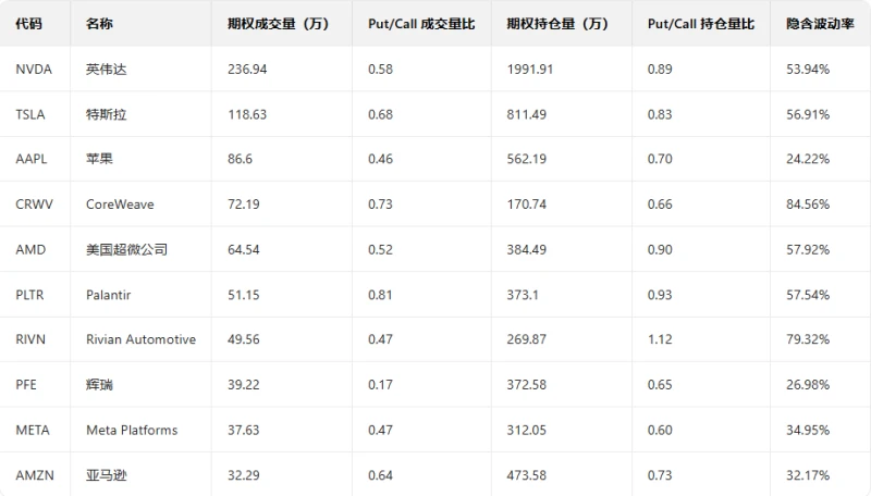 2. Rivian Automotive rose 9.81% in the previous trading day. The put/call ratio rose slightly the day before, and trading volume increased significantly.