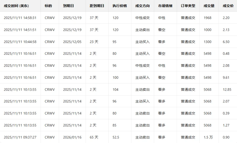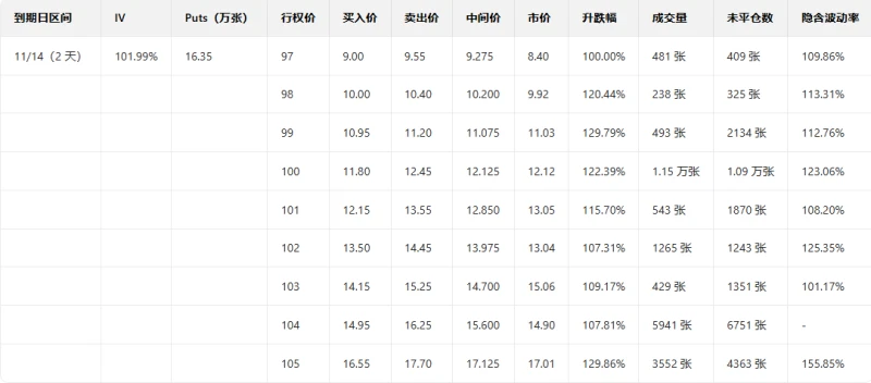 1. CoreWeave fell 16.31% in the previous trading day. The put/call ratio rose slightly the day before, and trading volume increased significantly.