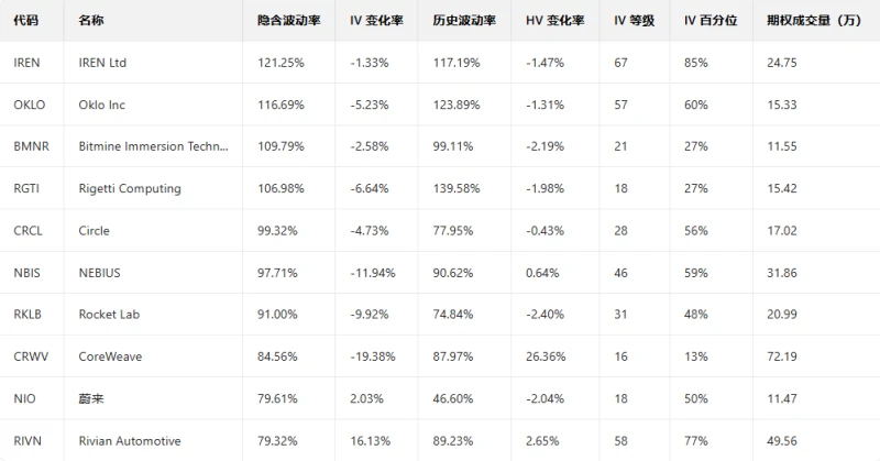 Top 10 US Stocks by Implied Volatility (Underlying Asset Market Cap > $10 Billion, Options Trading Volume > $100,000)