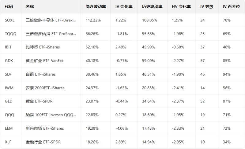 Top 10 US Stock ETFs by Implied Volatility (Based on: Market Cap > $10 billion)