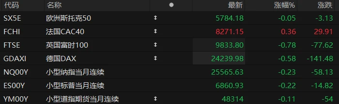 U.S. stock index futures fell across the board in pre-market trading on Thursday, while most major European indices also declined. As of press time, the Nasdaq... S&P 500 futures fell 0.23%, S&P 500 futures fell 0.22%, and Dow Jones futures fell 0.11%.