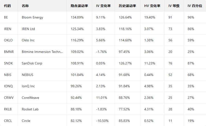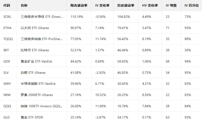 Top 10 US Stock ETFs by Implied Volatility (Based on: Market Cap > $10 billion)