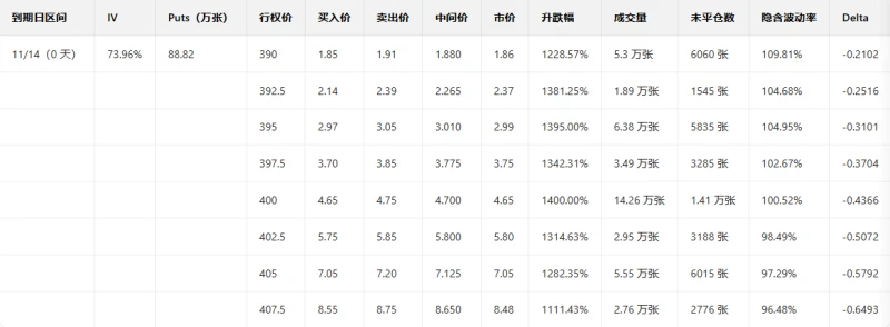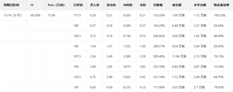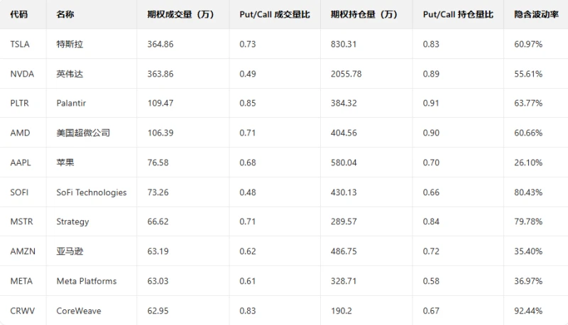 1. Tesla The stock fell 6.64% in the previous trading day, with the put/call ratio rising and trading volume increasing the day before.