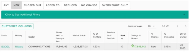 On November 15th, Beijing time, Berkshire Hathaway, owned by Warren Buffett, released its 2025 third-quarter holdings report (13F). Following Buffett's announcement that he will officially hand over the reins at the end of this year, Berkshire made a purchase of a major U.S. technology stock— Google— in the third quarter. Meanwhile, Berkshire Hathaway continued to reduce its stake in Apple . Stocks, and overall, there was a net selling of stocks in the third quarter.