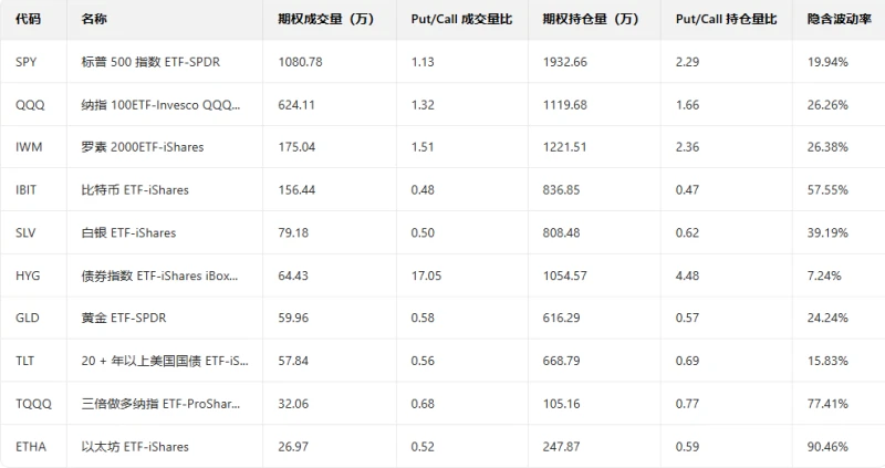 III. Top Ten US Stock ETF Options Trading Volume Ranking