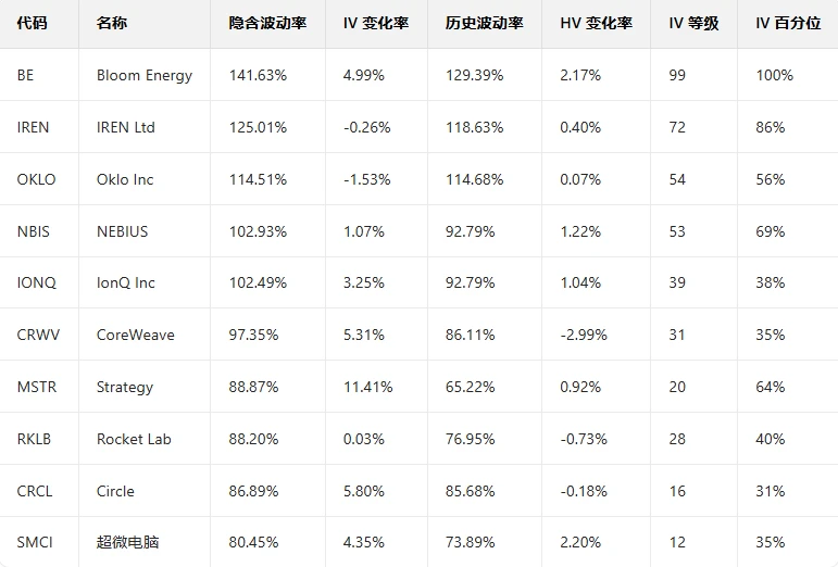 Top 10 US Stocks by Implied Volatility (Underlying Asset Market Cap > $10 Billion, Options Trading Volume > 100,000 Contracts)