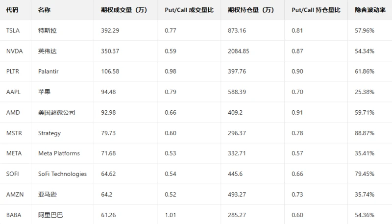 2. Alibaba The stock fell 4.22% in the previous trading day, with the put/call ratio rising and trading volume increasing the day before.
