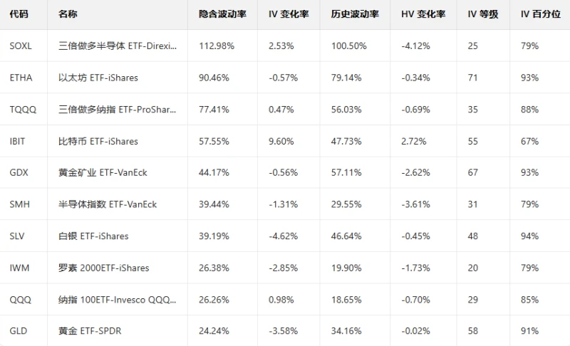 Top 10 US Stock ETFs by Implied Volatility (Based on: Market Cap > $10 billion)