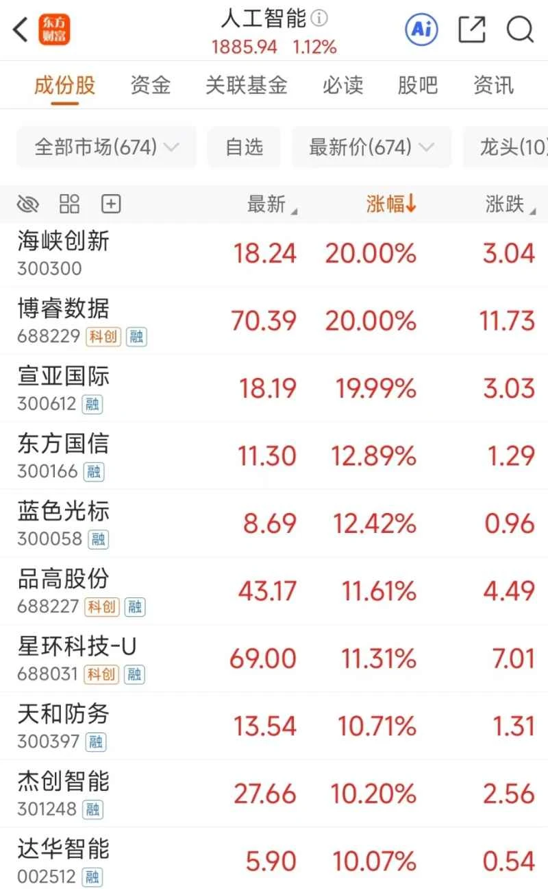 Amid the previous tech stock boom, AI applications, which had performed relatively modestly, made their debut on November 17th with Web3.0. Smart government Multimodal AI AI intelligent agent All of them are among the top gainers in the concept sector, including Xuan Ya International. Gel Software Rongji Software Inspur Software Huasheng Tiancheng 360 All of them hit their daily limit.