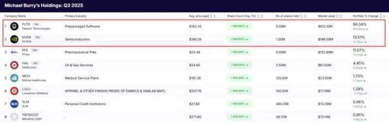 Earlier this month, prominent Wall Street short seller Michael Burry disclosed a large short position in Nvidia . According to the third-quarter holdings report disclosed by Scion Asset Management, a hedge fund under Michael Burry, the fund held 5 million Palantir put options worth approximately $912 million and 1 million Nvidia put options worth approximately $187 million (accounting for 80% of its total assets).